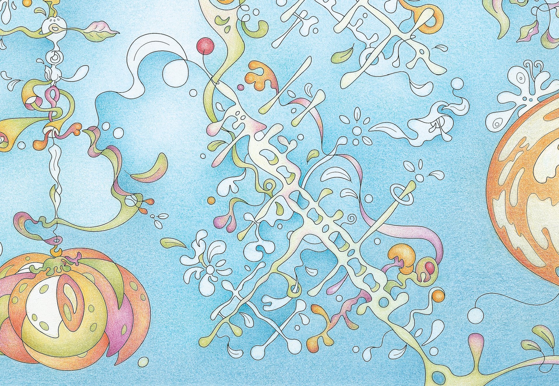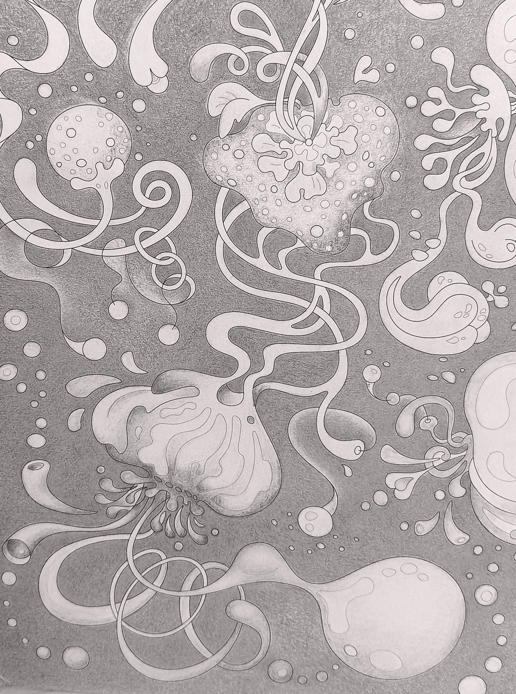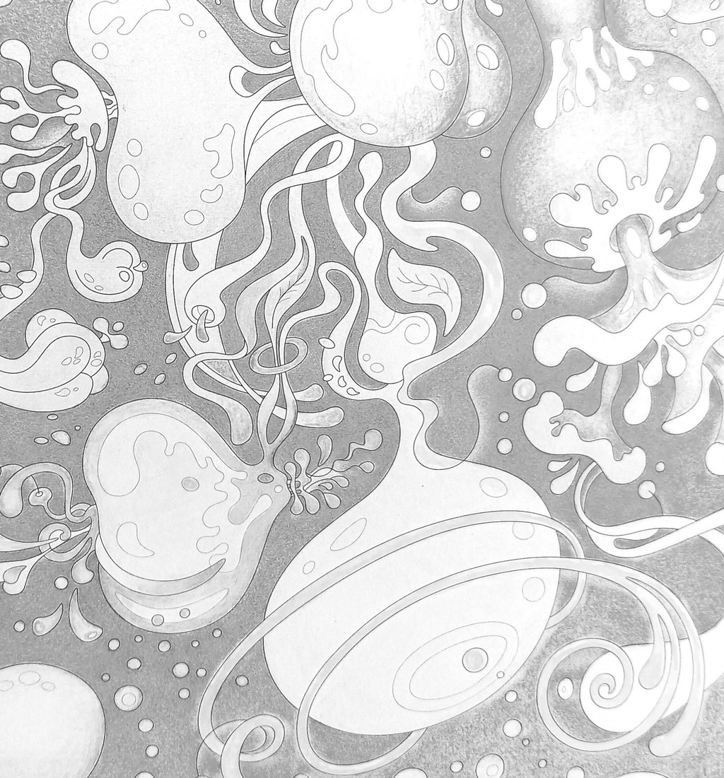 Coming from a different angle, sliding from free smooth curves to organic forms, entering a surreal mood and imaginary worlds.